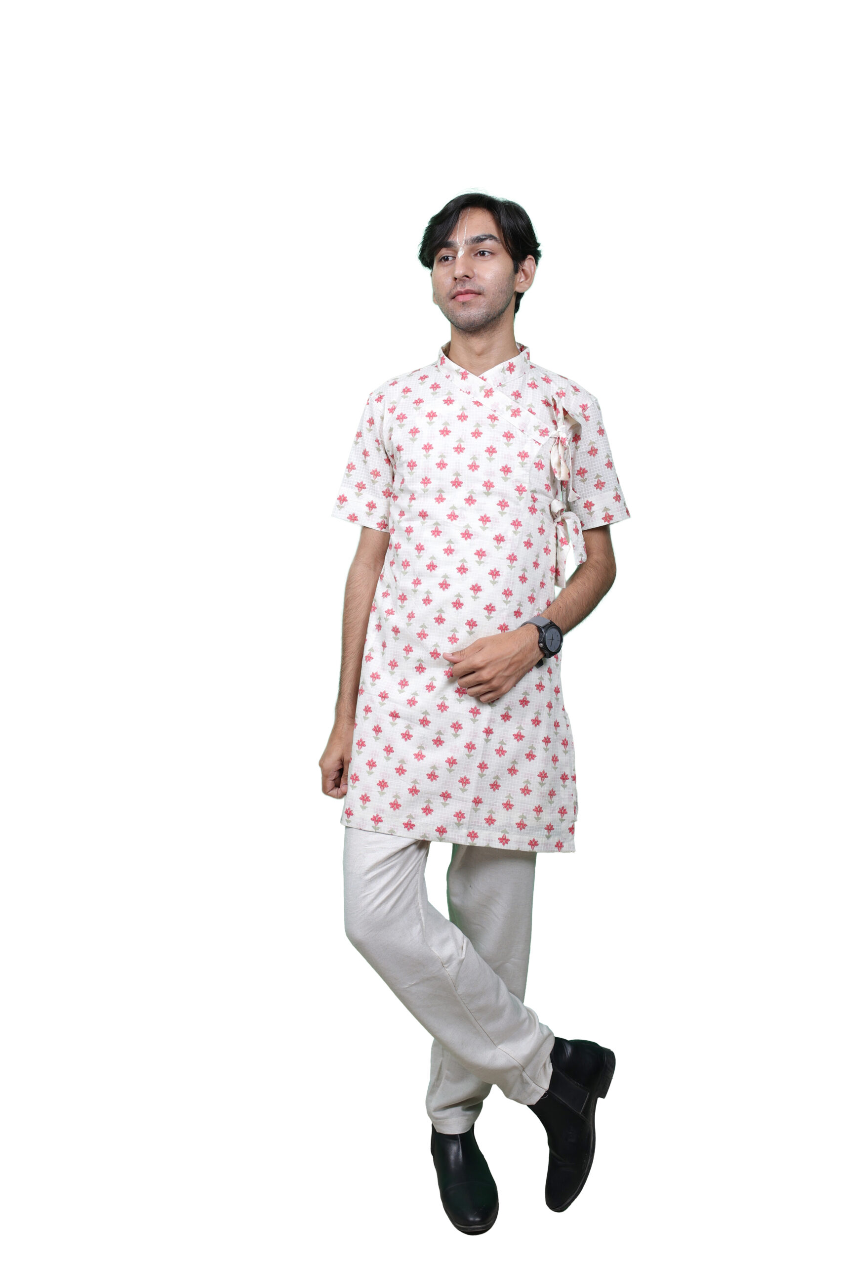 Cotton Printed Short Bagalbandhi – Youth Edition White
