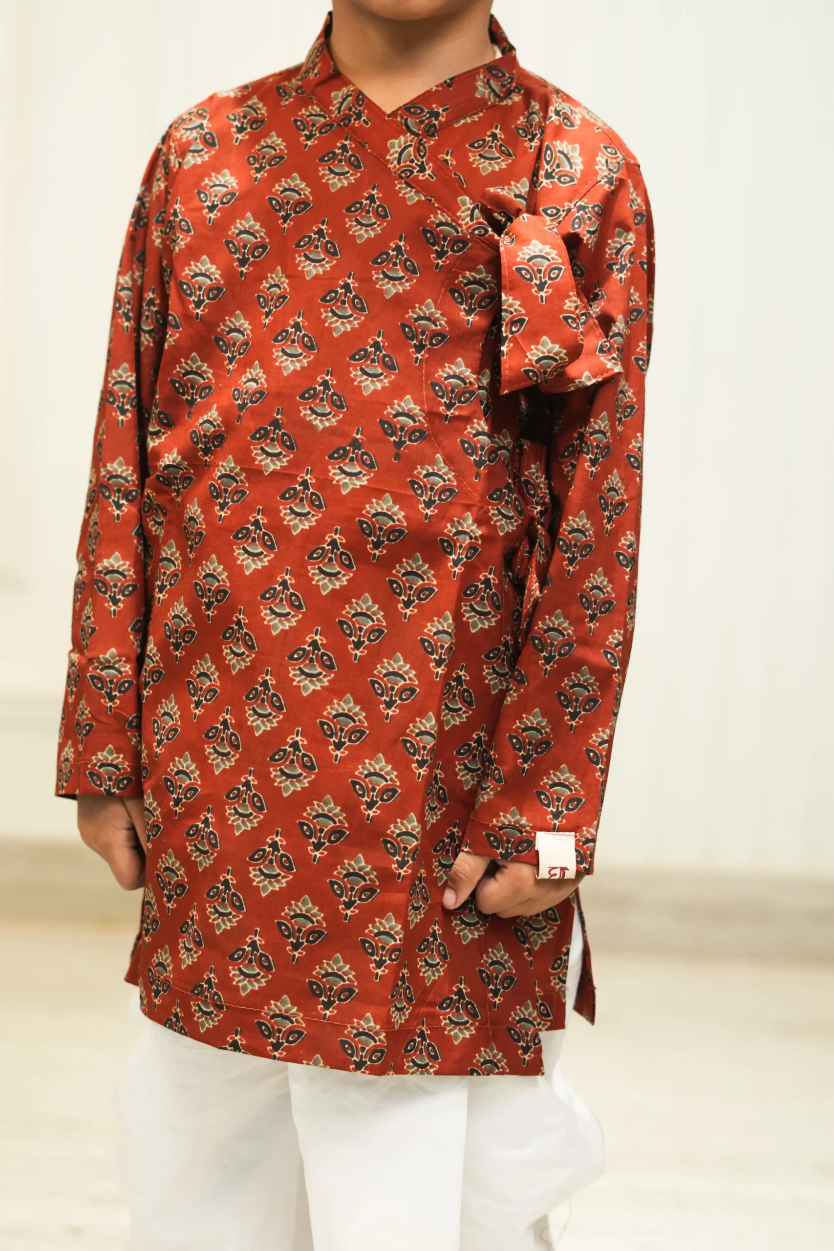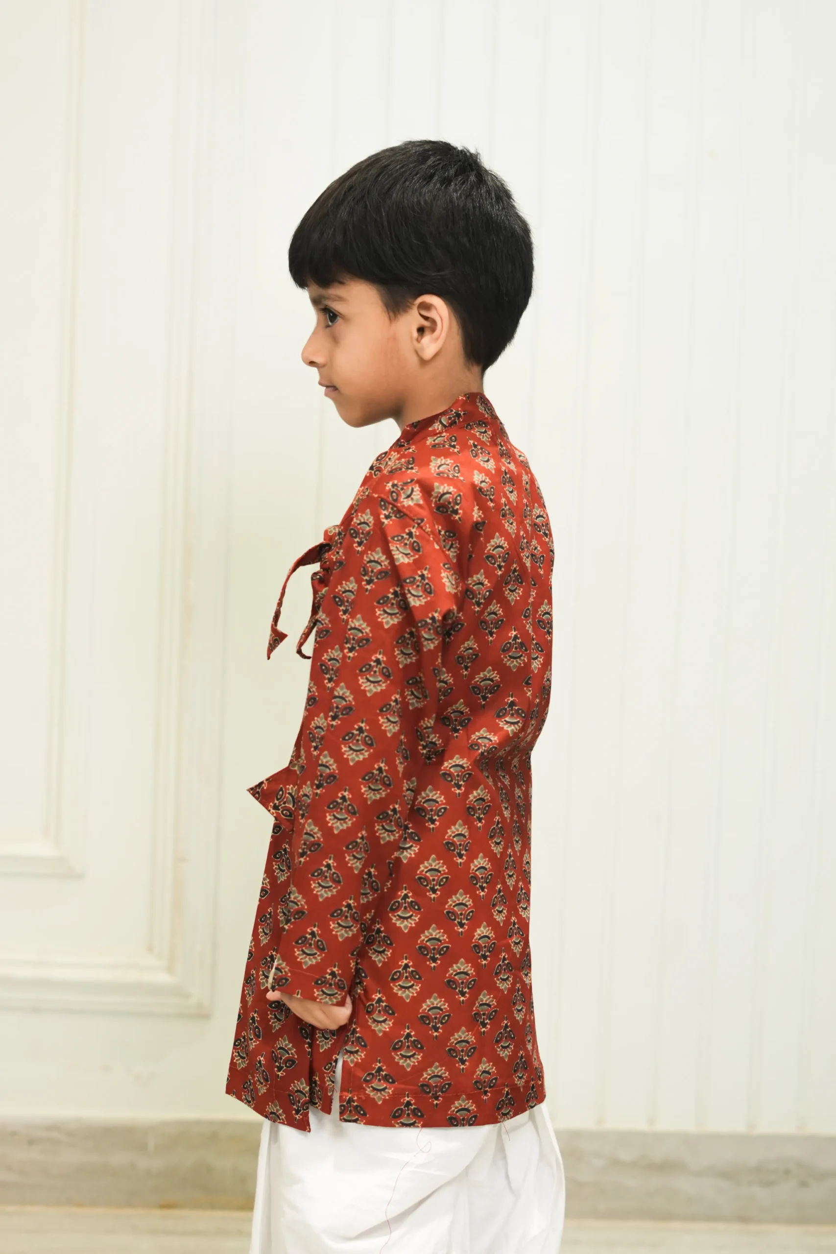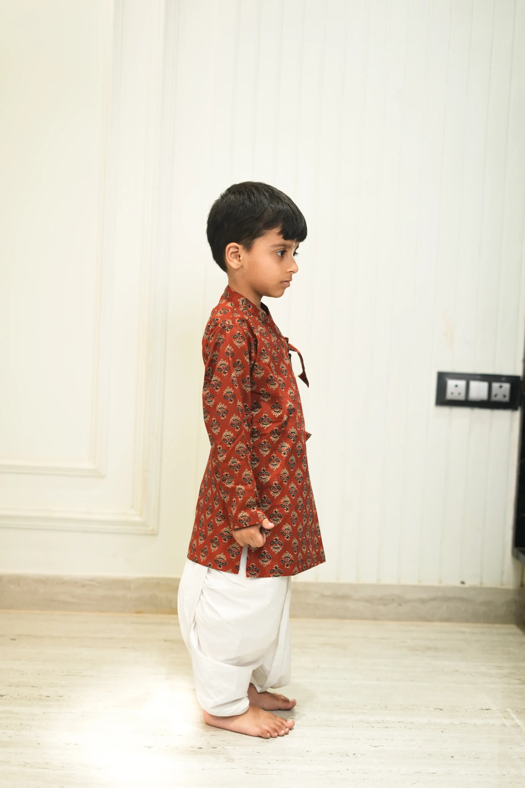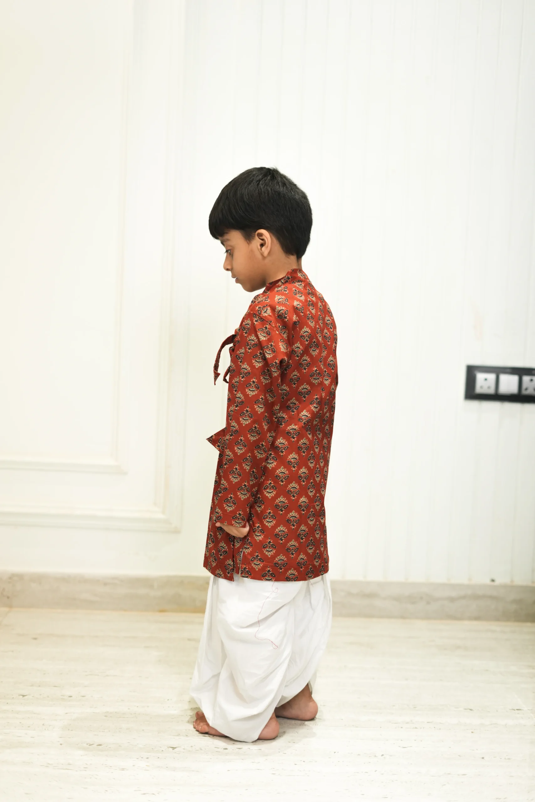 The Baal Leela Bagalbandhi Set captures the innocence and simplicity of traditional childhood dressing. Crafted in breathable cotton, this set features a classic bagalbandhi kurta paired with a soft dhoti, allowing ease of movement while maintaining a rooted, devotional aesthetic.