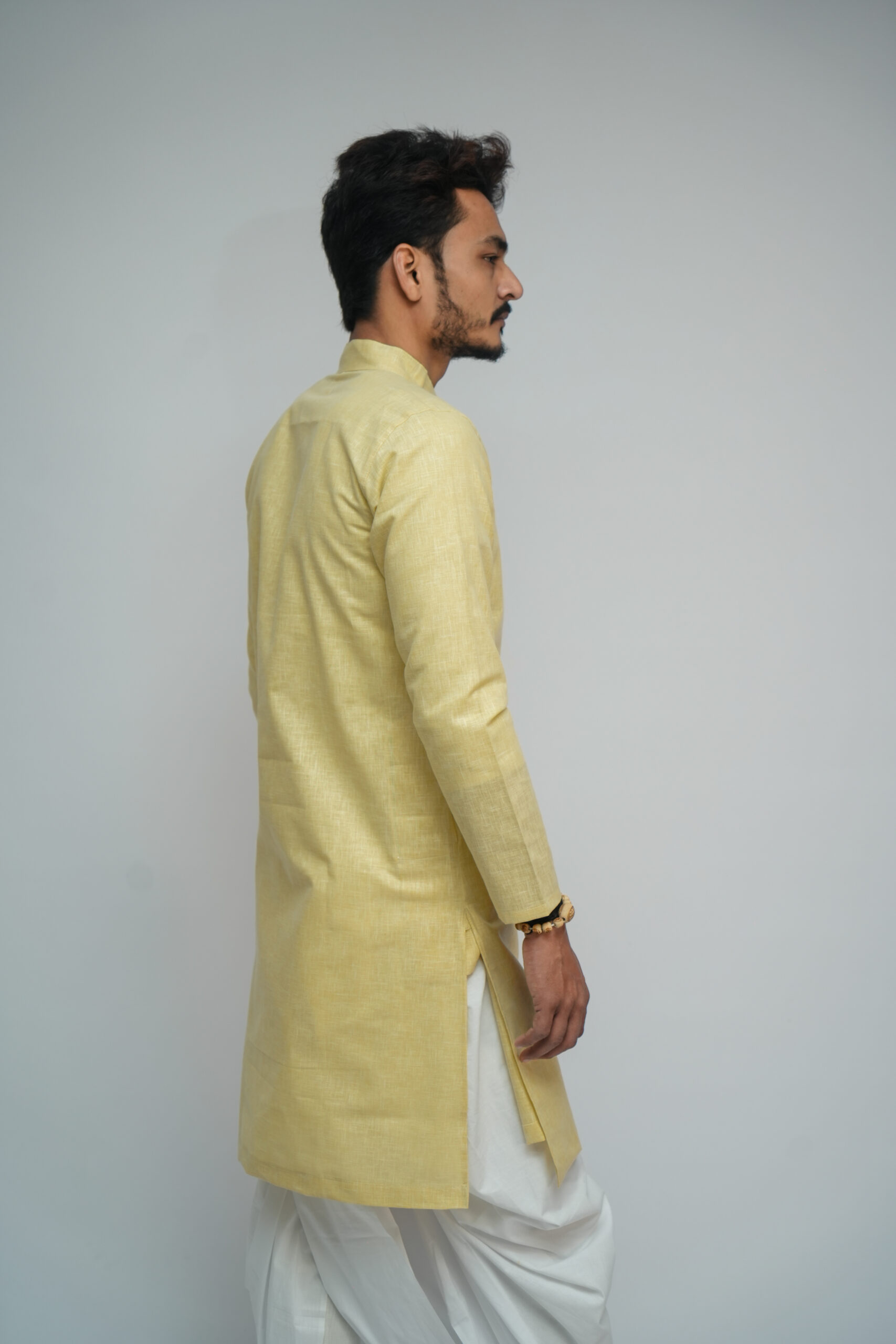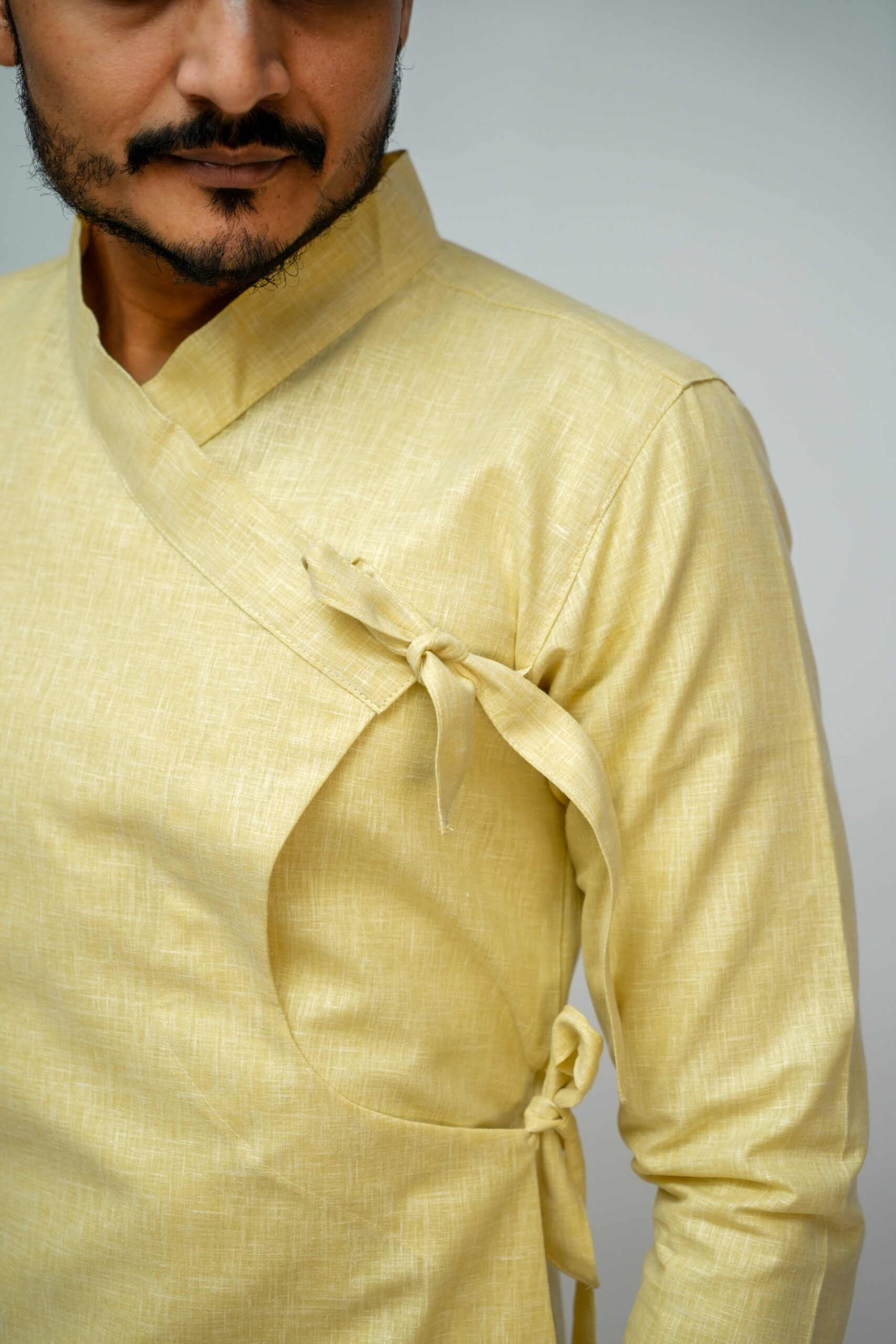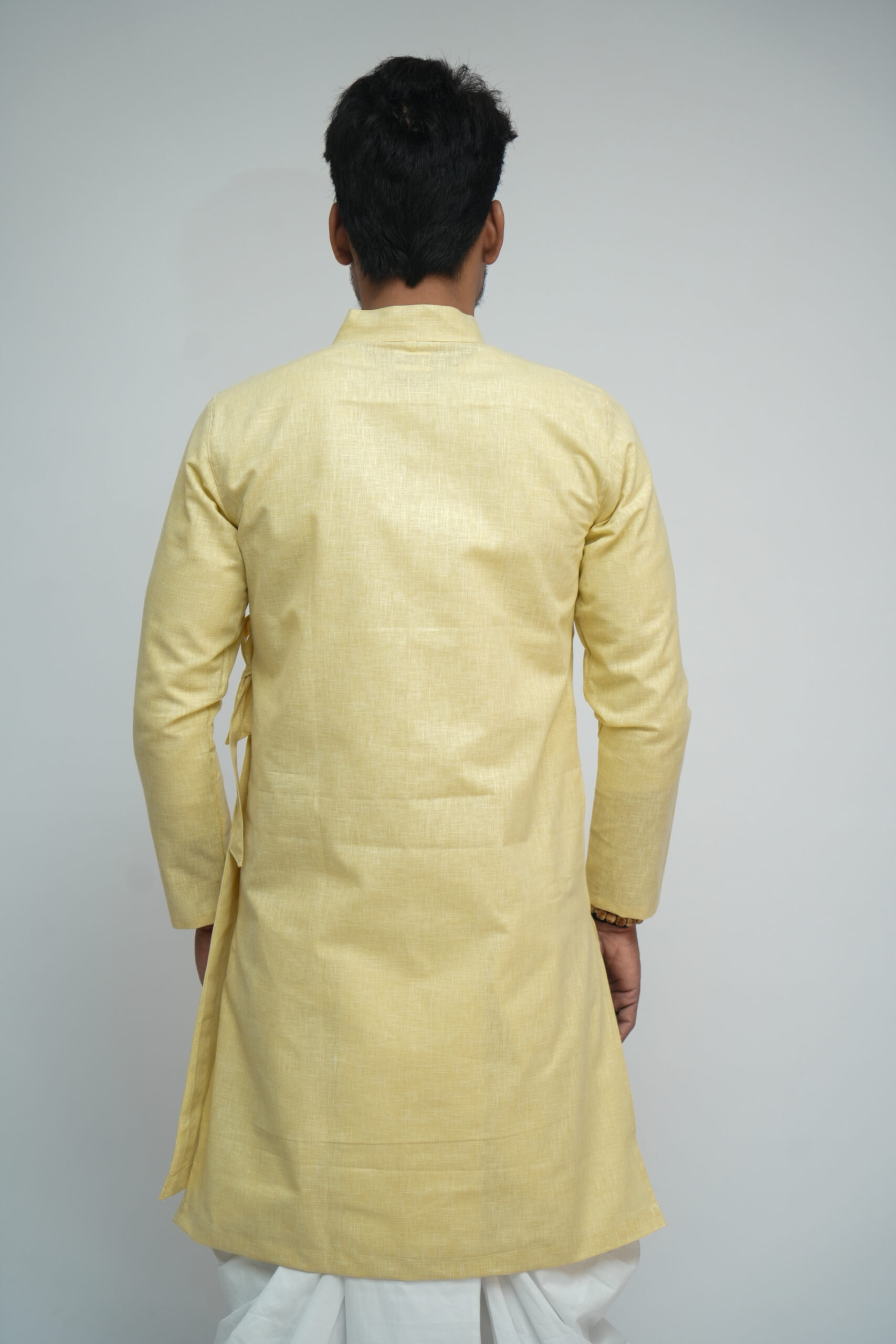 सॉफ्ट लिनन बागलबंधी लिनन–कॉटन मिश्रित कपड़े से बनी है, जो हल्की, सांस लेने योग्य और पूरे दिन आरामदायक रहती है। इसकी पारंपरिक रैप डिज़ाइन सहज पहनाव और संतुलित फिट प्रदान करती है। सादा और सलीकेदार रूप इसे रोज़मर्रा के पारंपरिक पहनावे, पूजा और सांस्कृतिक अवसरों के लिए उपयुक्त बनाता है।
