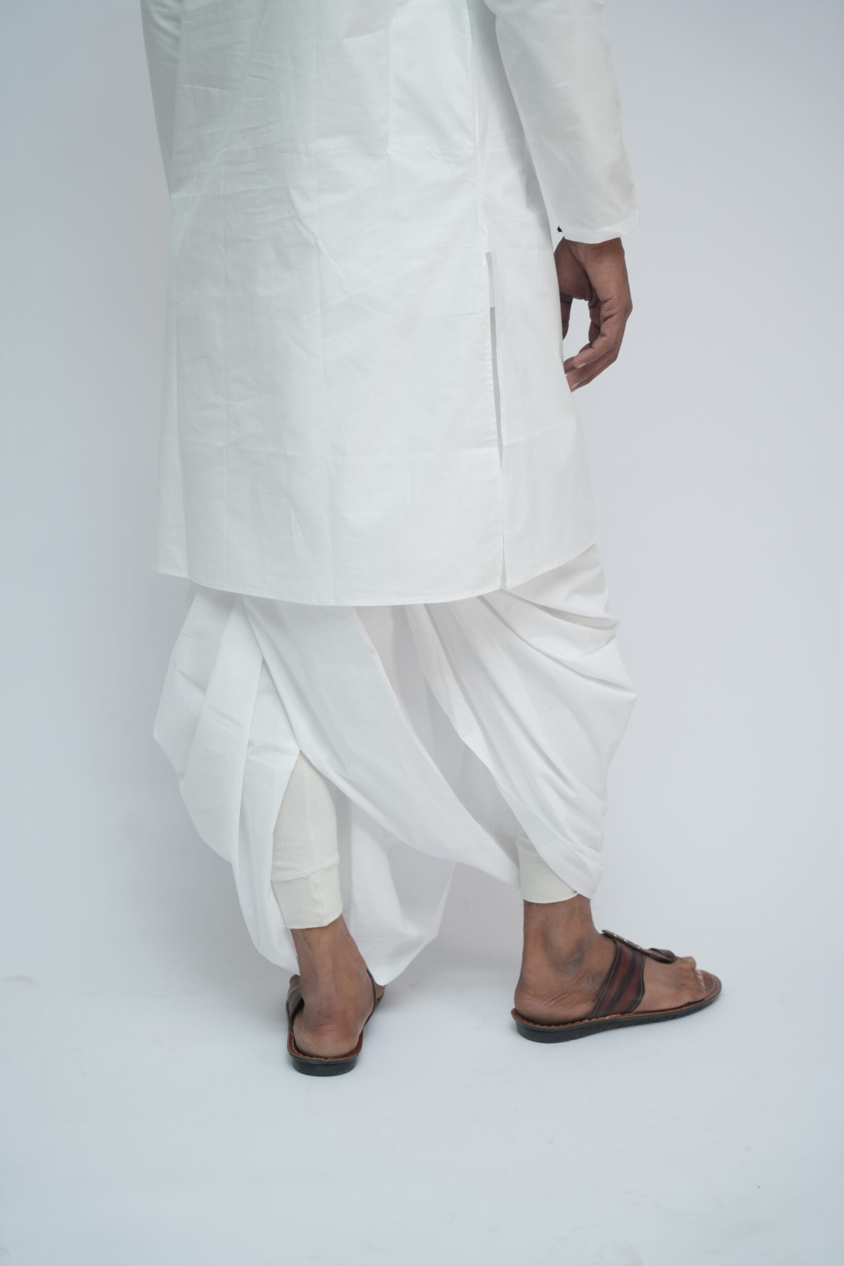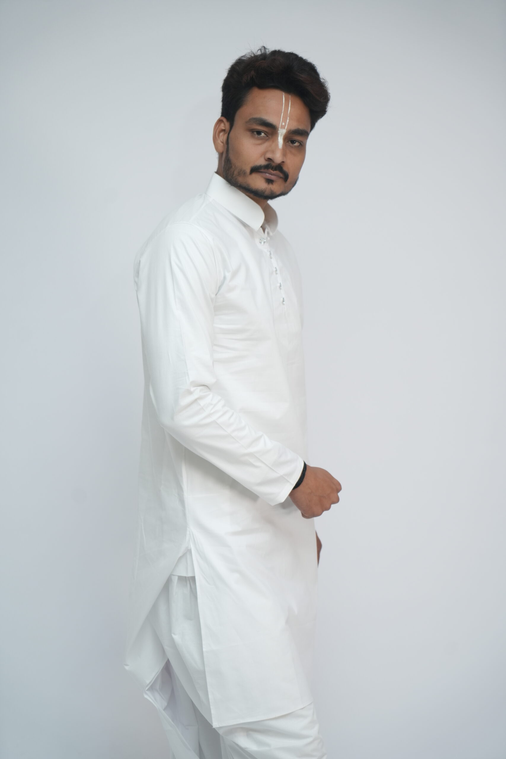 The White Cotton Kurta is crafted from breathable cotton fabric, offering all-day comfort and ease of movement. Designed in a straight, regular silhouette, it provides a relaxed fit that works well for daily wear, temple visits, and traditional occasions. Minimal in design and versatile in use, this kurta reflects Dharniya’s approach to simple, functional, and timeless clothing.