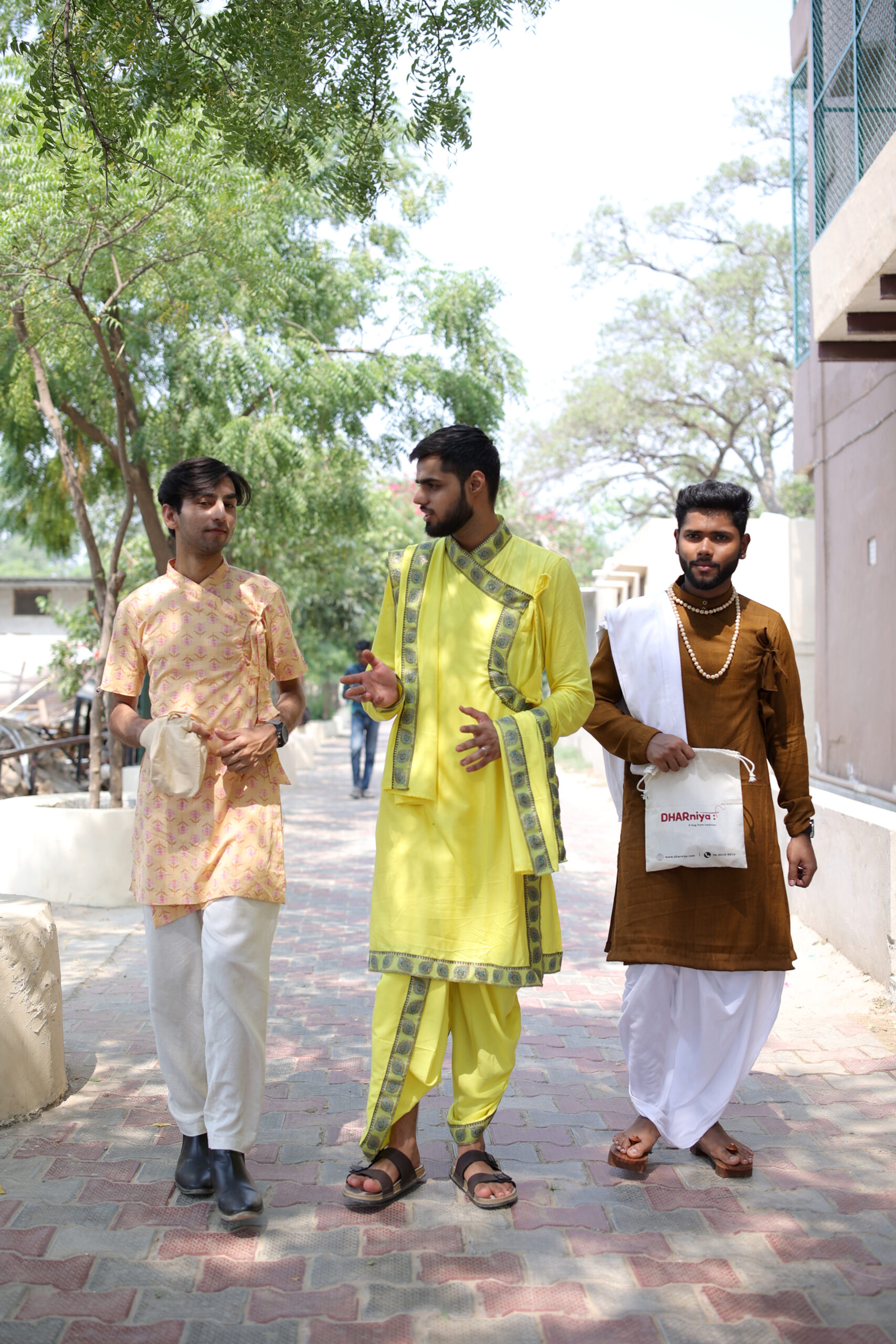 So, we created a line that’s rooted in tradition but tailored for today – from breezy bagalbandhis to luxe linen pajamas. Worn by kirtaniyas, gurus, temple-goers, and Gen-Z ISKCONers, Dharniya blends comfort, culture, and conscious living in every thread.