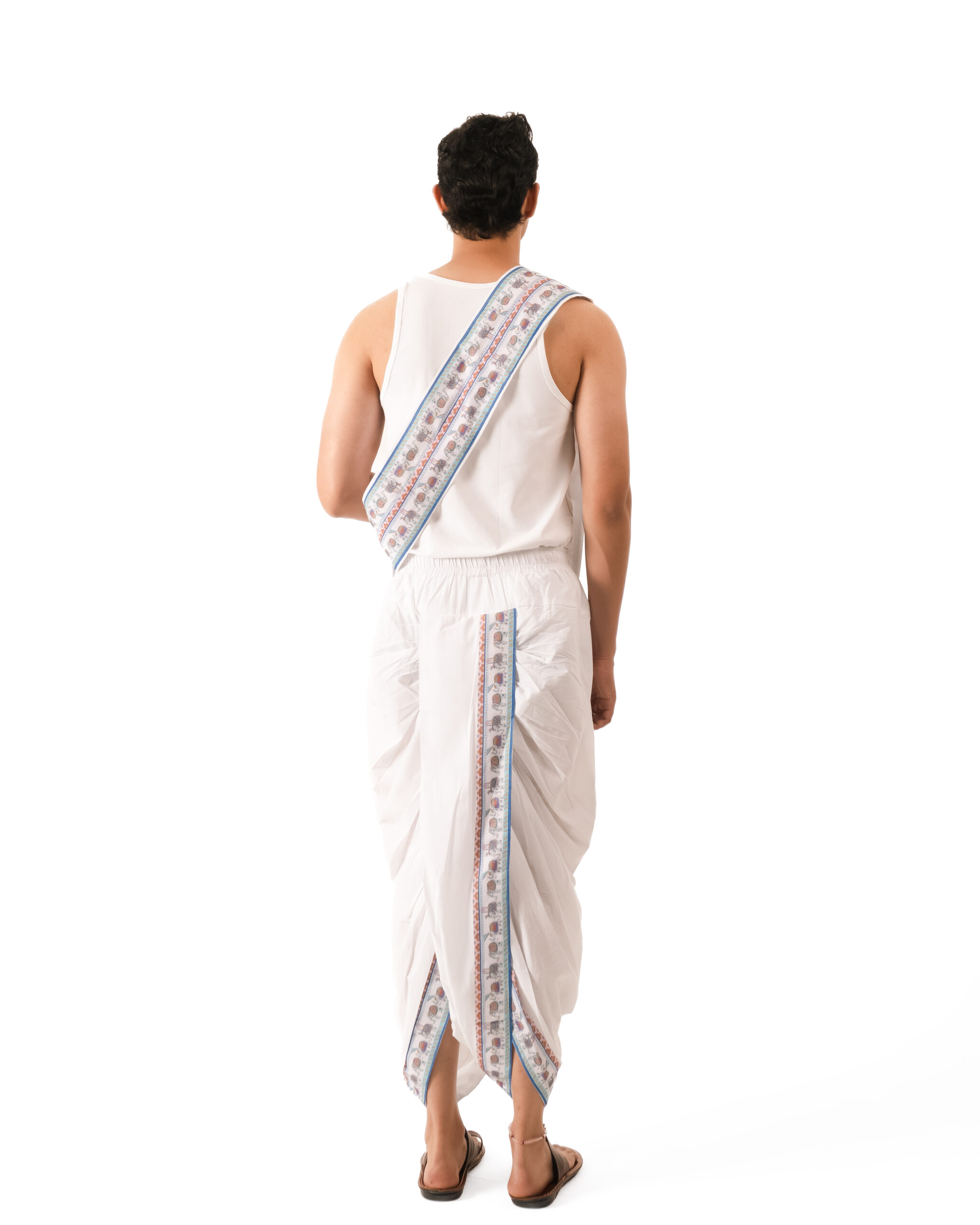 सेट में धोती, पटका, बगलबंधी टॉप शामिल