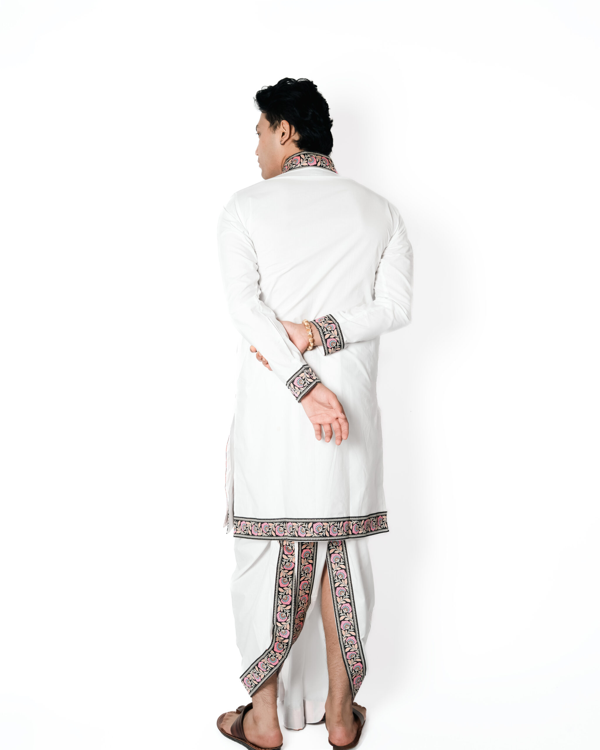 Includes: One Bagalbandhi, One Dhoti, and One Patka. पुष्कर सेट शुद्धता और भक्ति का प्रतीक है। मुलायम कॉटन से बना यह परिधान दिनभर आराम और हल्कापन प्रदान करता है। इसके पुष्पाकृति बॉर्डर सौंदर्य और परंपरा का सुंदर संगम हैं, जो वृद्धि और शुभता का भाव प्रकट करते हैं।