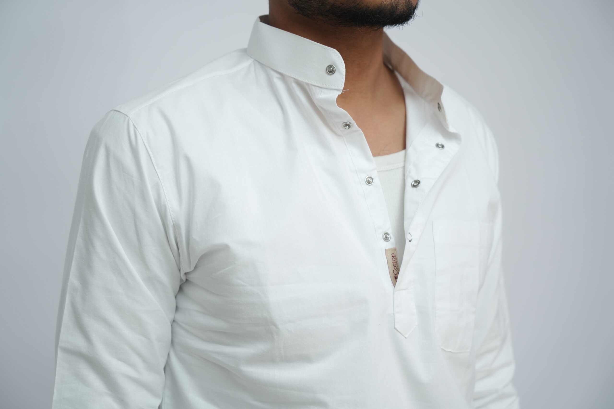 The White Cotton Kurta is crafted from breathable cotton fabric, offering all-day comfort and ease of movement. Designed in a straight, regular silhouette, it provides a relaxed fit that works well for daily wear, temple visits, and traditional occasions. Minimal in design and versatile in use, this kurta reflects Dharniya’s approach to simple, functional, and timeless clothing.